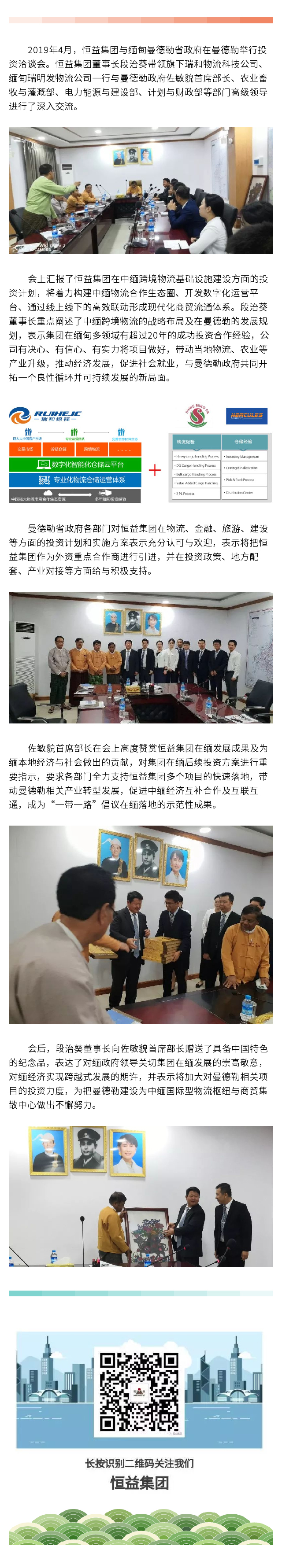 恒益集團(tuán)董事長段治葵一行與緬甸曼德勒省政府舉行投資洽談 來源: 瀏覽量:7962 日期:2019-05-09 分享到: 上一篇:恒益集團(tuán)組織召開戰(zhàn)略部署及強化內(nèi)部管理會議 下一篇:京東集團(tuán)到訪恒益,達(dá)成農(nóng)牧業(yè)領(lǐng)域合作共識