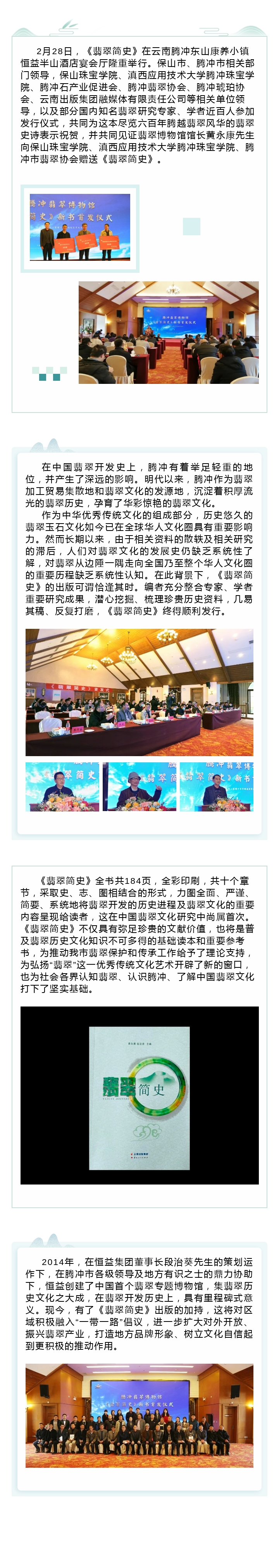 國內(nèi)第一本系統(tǒng)介紹翡翠文化形成與發(fā)展歷程的圖書——《翡翠簡史》在云南騰沖正式發(fā)行 來源: 瀏覽量:5323 日期:2021-03-01 分享到: 上一篇:“東山之下,原創(chuàng)詩歌、散文分享會”在東山書院隆重舉行 下一篇:恒益礦業(yè)公司明光區(qū)域組織全員進行核酸檢測