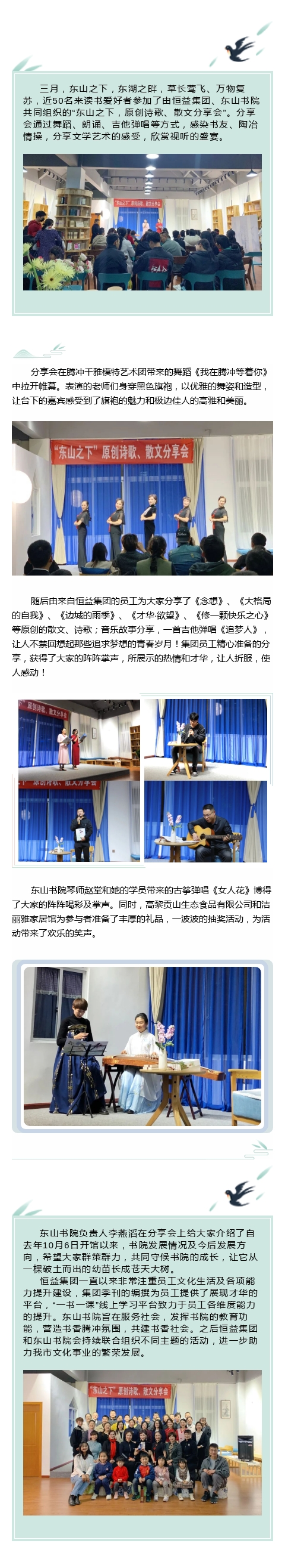 “東山之下,原創(chuàng)詩歌、散文分享會”在東山書院隆重舉行 來源: 瀏覽量:5602 日期:2021-03-09 分享到: 上一篇:恒益集團掛牌“騰沖市對外友好協(xié)會文化交流基地” 下一篇:國內(nèi)第一本系統(tǒng)介紹翡翠文化形成與發(fā)展歷程的圖書——《翡翠簡史》在云南騰沖正式發(fā)行