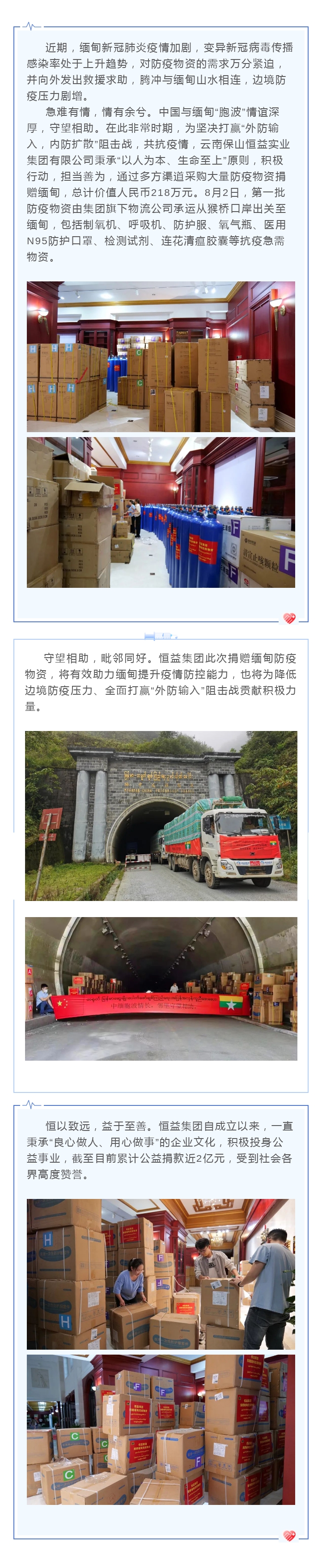 守望相助,毗鄰?fù)谩阋婕瘓F(tuán)向緬捐贈價(jià)值人民幣218萬元抗疫物資 來源: 瀏覽量:5195 日期:2021-08-03 分享到: 上一篇:騰沖市政府李青海副市長一行蒞臨恒益集團(tuán)東山農(nóng)業(yè)公司考察 下一篇:保山市委書記楊軍一行蒞臨東山國際康養(yǎng)度假區(qū)調(diào)研指導(dǎo)