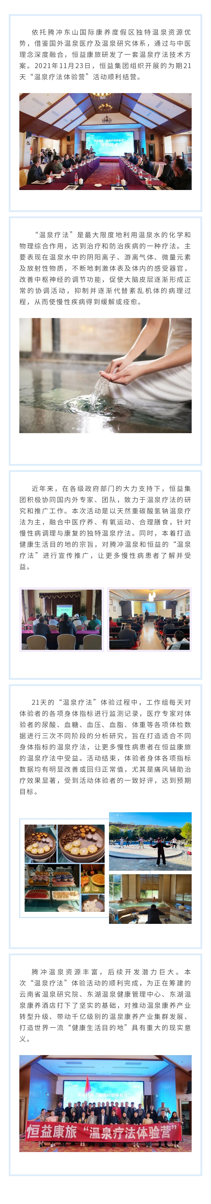恒益康旅“溫泉療法體驗營”活動順利結(jié)營 來源: 瀏覽量:5581 日期:2021-12-01 分享到: 上一篇:政校企共建云南省溫泉研究院簽約儀式成功舉辦 下一篇:“云南省騰沖市中藥材產(chǎn)業(yè)科技特派團” 項目第二次會議順利召開,助力騰沖中藥材產(chǎn)業(yè)發(fā)展
