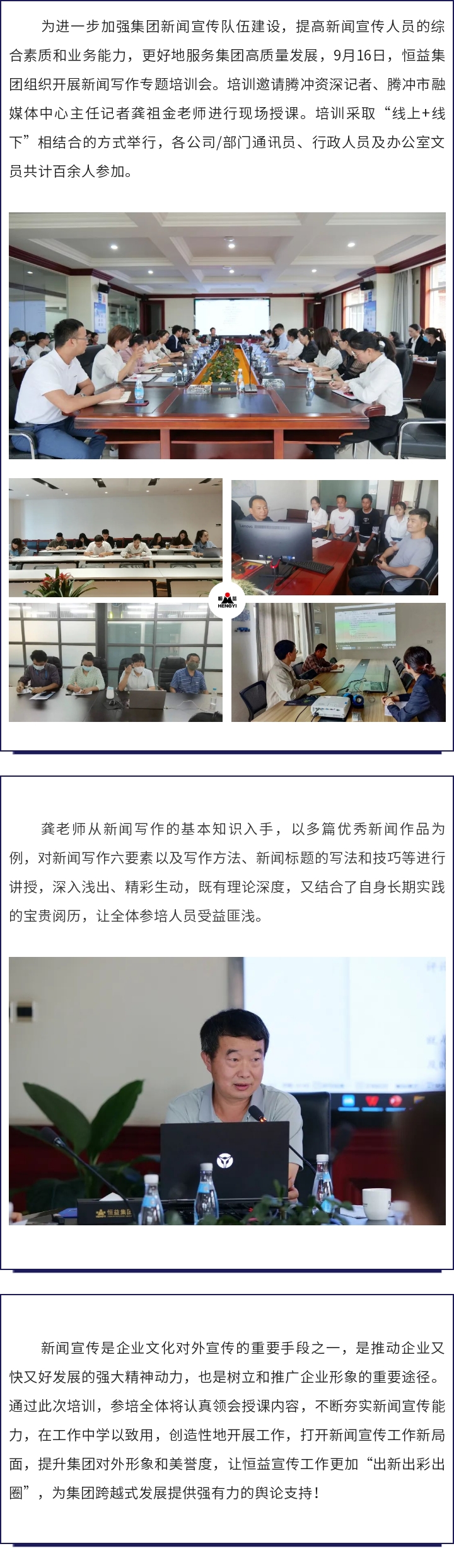 恒益集團(tuán)組織開展新聞寫作專題培訓(xùn) 來源: 瀏覽量:4067 日期:2022-09-20 分享到: 上一篇:校企合作譜新篇,協(xié)同育人共發(fā)展 下一篇:喜訊│恒益集團(tuán)榮獲捐資助學(xué)、尊師重教先進(jìn)集體(個(gè)人)