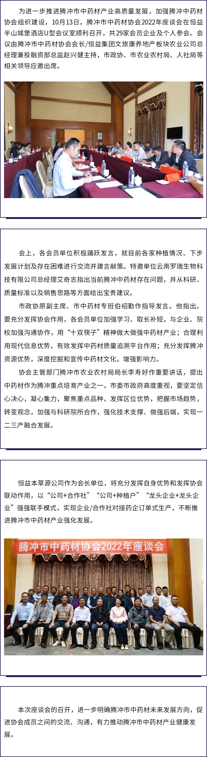 騰沖市中藥材協(xié)會(huì)2022年座談會(huì)順利召開 來源: 瀏覽量:4033 日期:2022-10-16 分享到: 上一篇:騰沖市第一職業(yè)高級(jí)中學(xué)領(lǐng)導(dǎo)一行蒞臨恒益集團(tuán)考察交流 下一篇:恒益集團(tuán)與昆明理工大學(xué)簽署校企合作協(xié)議