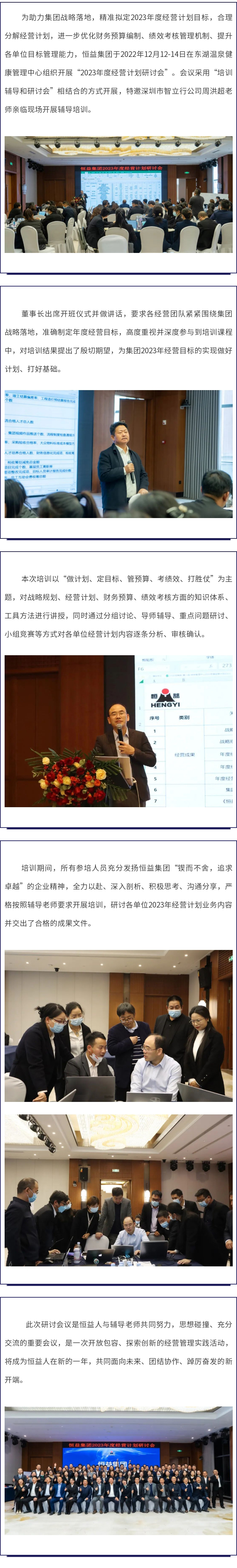 做計(jì)劃、定目標(biāo)、管預(yù)算、考績效、打勝仗——恒益集團(tuán)2023年度經(jīng)營計(jì)劃研討會順利舉行 來源: 瀏覽量:4419 日期:2022-12-16 分享到: 上一篇:大展宏兔氣象新——恒益又一新項(xiàng)目開工大吉 下一篇:2022騰沖科學(xué)家論壇·溫泉康養(yǎng)產(chǎn)業(yè)發(fā)展分論壇成果豐碩