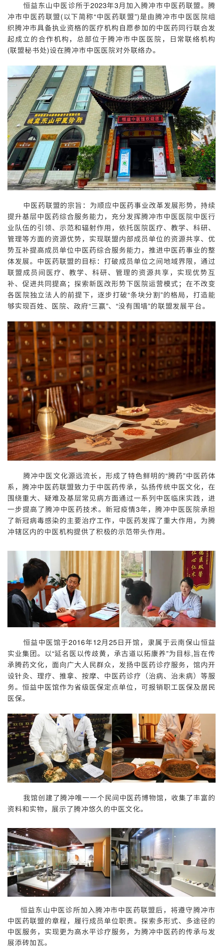 喜訊 | 恒益東山中醫(yī)診所加入騰沖市中醫(yī)藥聯(lián)盟 來源: 瀏覽量:3800 日期:2023-03-20 分享到: 上一篇:云南騰沖露絲福生物產(chǎn)業(yè)有限責(zé)任公司 露絲福大馬士革玫瑰精深加工項目環(huán)境影響評價公眾參與第二次信息公示 下一篇:東山棧道 巾幗健行