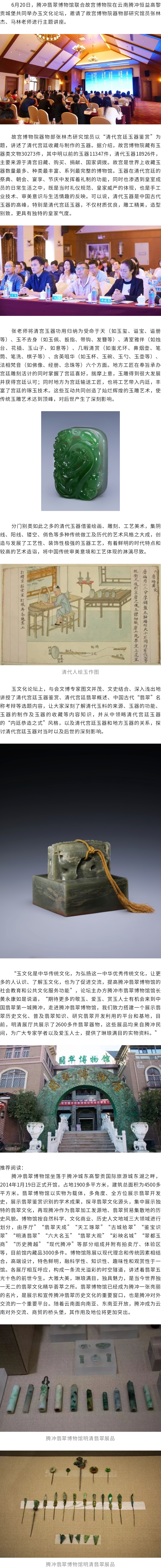 騰沖玉文化論壇成功舉辦 跟著故宮博物院文博專家解碼清代宮廷玉器 來源: 瀏覽量:3350 日期:2023-06-26 分享到: 上一篇:工會(huì)溫暖進(jìn)萬家 清涼慰問至恒益 下一篇:外出考察拓思路 學(xué)習(xí)借鑒促提升 ——恒益集團(tuán)董事長(zhǎng)段治葵帶團(tuán)隊(duì)赴廈門象嶼集團(tuán)考察學(xué)習(xí)