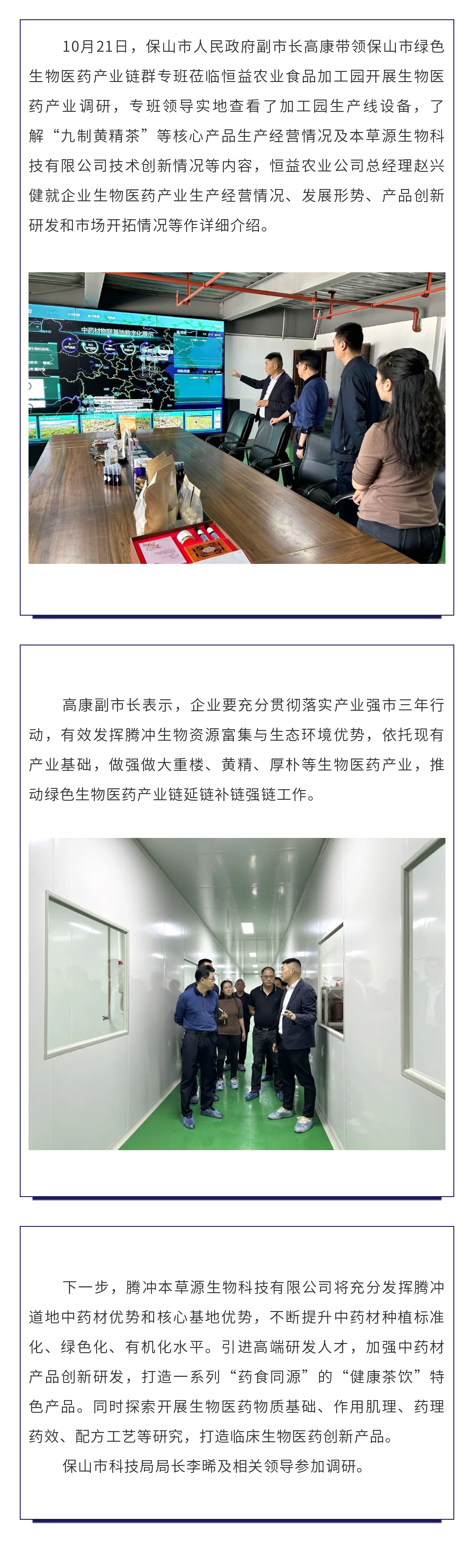 保山市綠色生物醫(yī)藥產(chǎn)業(yè)鏈群專班蒞臨恒益農(nóng)業(yè)食品加工園調(diào)研 來源: 瀏覽量:2799 日期:2023-10-21 分享到: 上一篇:2023騰沖科學家論壇·孟中印緬地區(qū)國際物流通道合作論壇專家考察團開展現(xiàn)場考察 下一篇:云南文博會,高黎貢文化創(chuàng)意產(chǎn)業(yè)園區(qū)展現(xiàn)騰沖多彩非遺文化