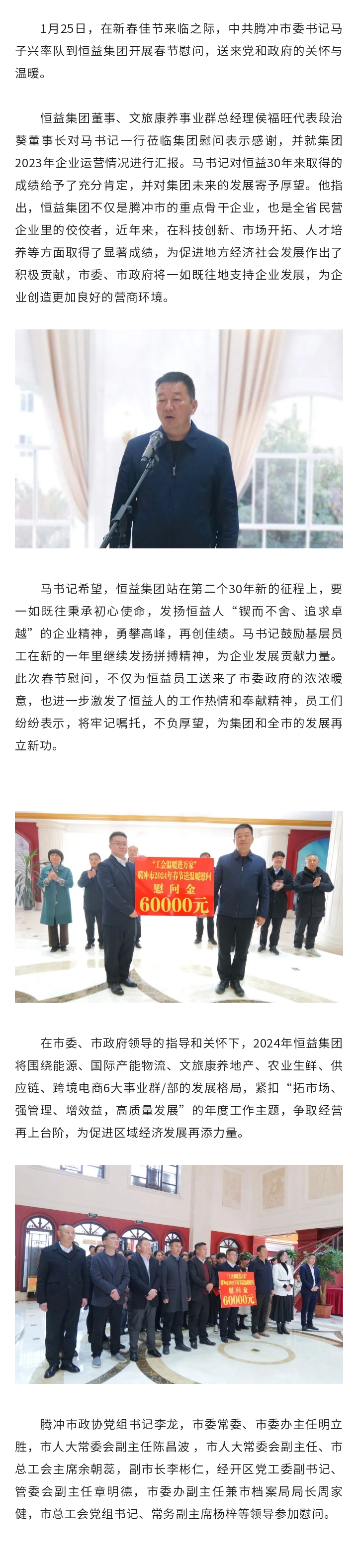 新春送祝福,關(guān)懷暖人心丨中共騰沖市委書記馬子興率隊(duì)到恒益集團(tuán)開展春節(jié)慰問 來源: 瀏覽量:2966 日期:2024-01-25 分享到: 上一篇:花卉所科技人員指導(dǎo)露絲福公司開展鄉(xiāng)村振興科技創(chuàng)新縣——大馬士革玫瑰全產(chǎn)業(yè)鏈技術(shù)集成課題 下一篇:“拓市場(chǎng),強(qiáng)管理,增效益,高質(zhì)量發(fā)展”——恒益集團(tuán)組織召開第二屆董事會(huì)第八次會(huì)議暨2023年度工作會(huì)議