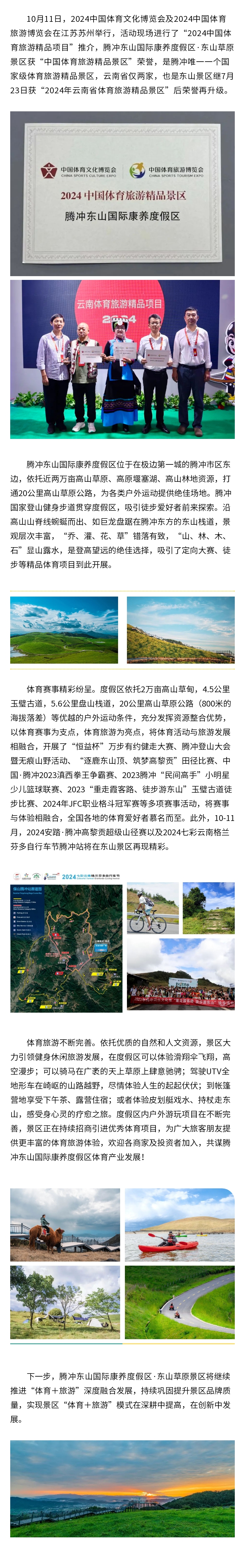 榮譽(yù)再升級(jí)|騰沖東山國(guó)際康養(yǎng)度假區(qū)·東山草原景區(qū)獲“中國(guó)體育旅游精品景區(qū)”殊榮 來(lái)源: 瀏覽量:2039 日期:2024-10-11 分享到: 上一篇:綠美東山:綠色蛻變,產(chǎn)業(yè)發(fā)展新亮點(diǎn) 下一篇:逐“綠”而行,恒益集團(tuán)奏響全面綠色轉(zhuǎn)型協(xié)奏曲